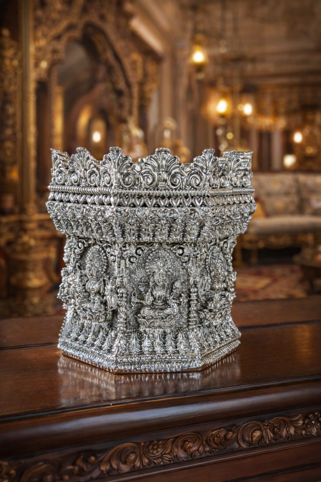 Bring spiritual purity and prosperity into your home with the Ashta Lakshmi Tulasi Pot, a sacred planter inspired by the eight forms of Goddess Lakshmi, known to bless devotees with wealth, harmony, and success. Tulasi (Holy Basil) holds great spiritual significance in Hindu tradition and is considered a symbol of purity and positive energy.