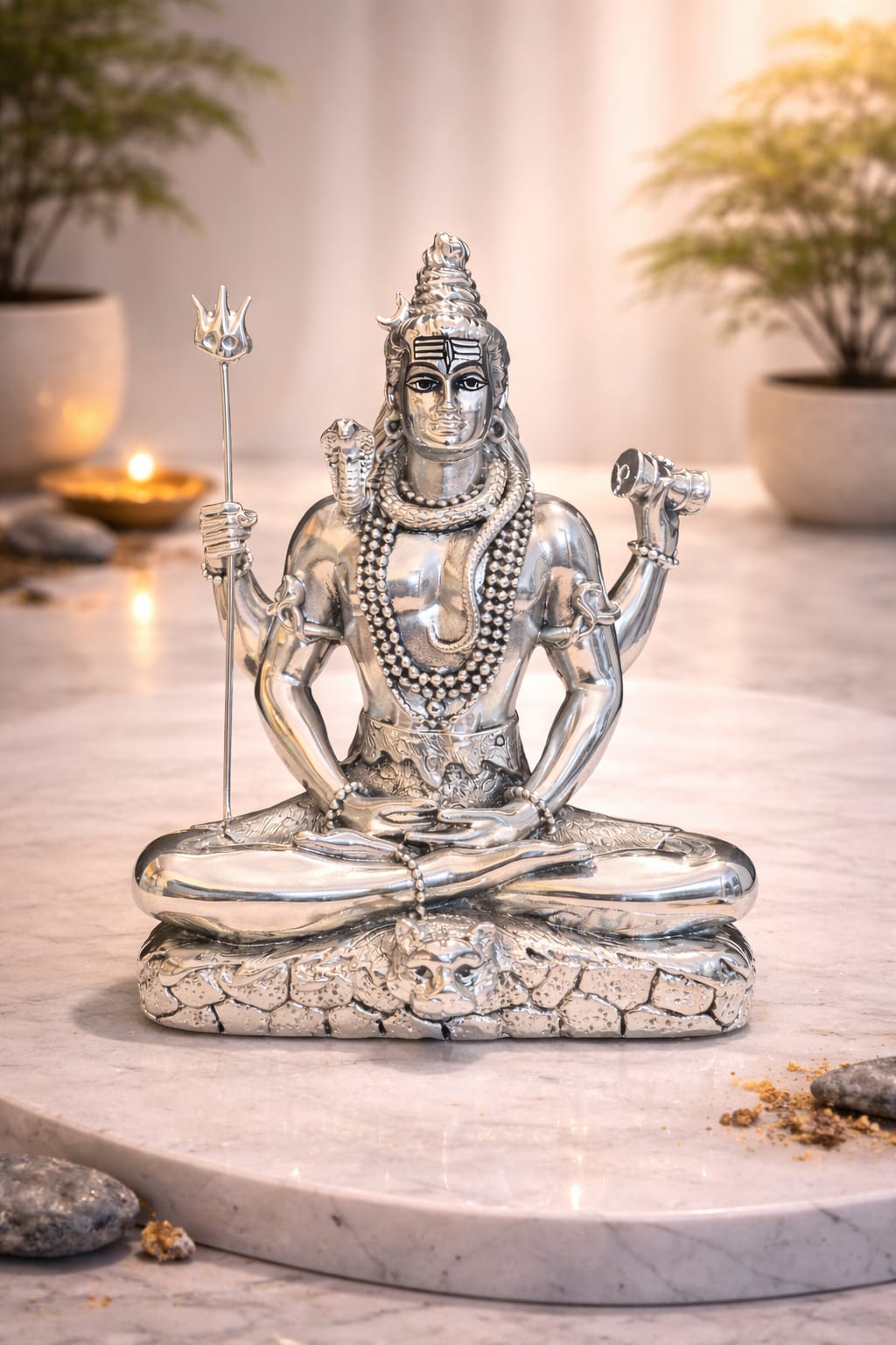 The meditative posture of Lord Shiva reflects deep concentration, calmness, and spiritual power, making this idol ideal for meditation rooms, home temples, and office spaces. It is believed that placing a Meditating Shiva Idol in your surroundings helps reduce stress, enhance mental clarity, and create a peaceful environment.